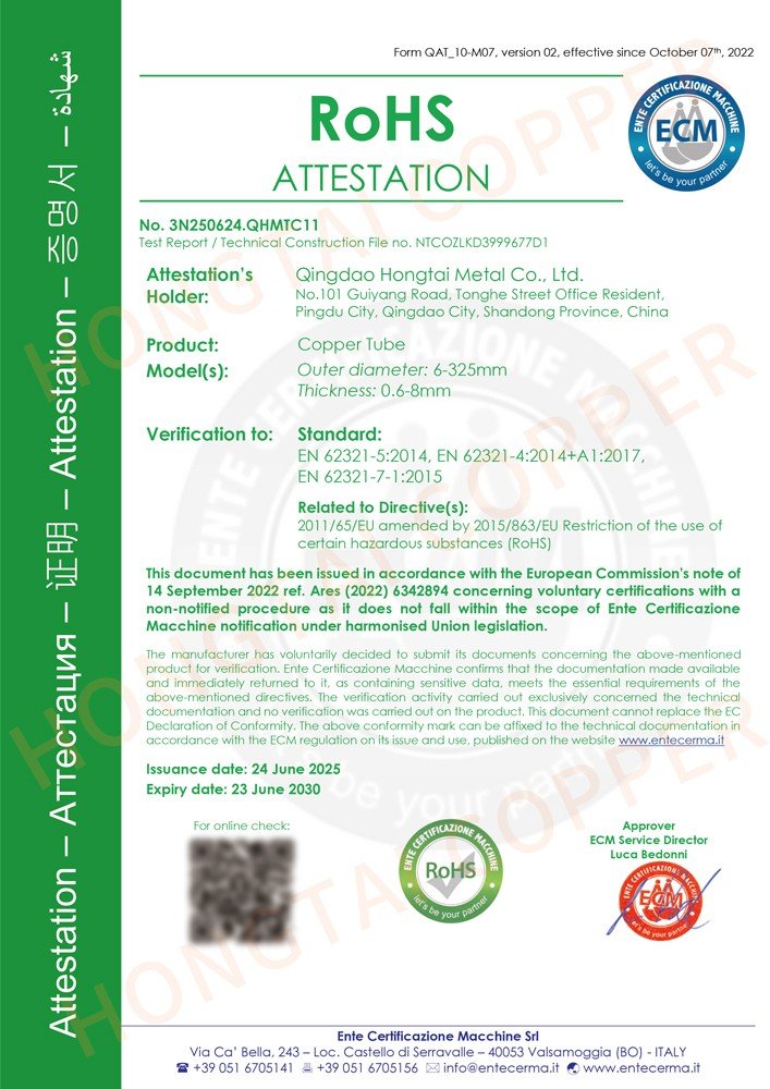 喜訊:宏泰銅管順利通過歐盟CPR與ROHS標準認證