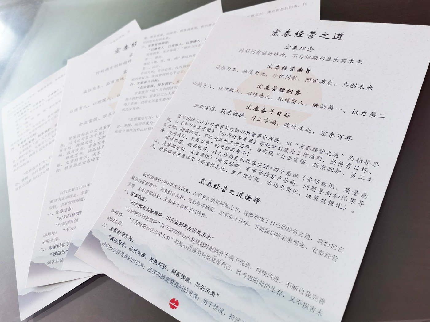 幾十年經(jīng)營(yíng)企業(yè)的不斷探索,與市場(chǎng)打交道的過(guò)程中,李保成先生提出了“企業(yè)富強(qiáng)、股東擁護(hù)、員工幸福、政府歡迎、宏泰百年”的奮斗目標(biāo)與使命。